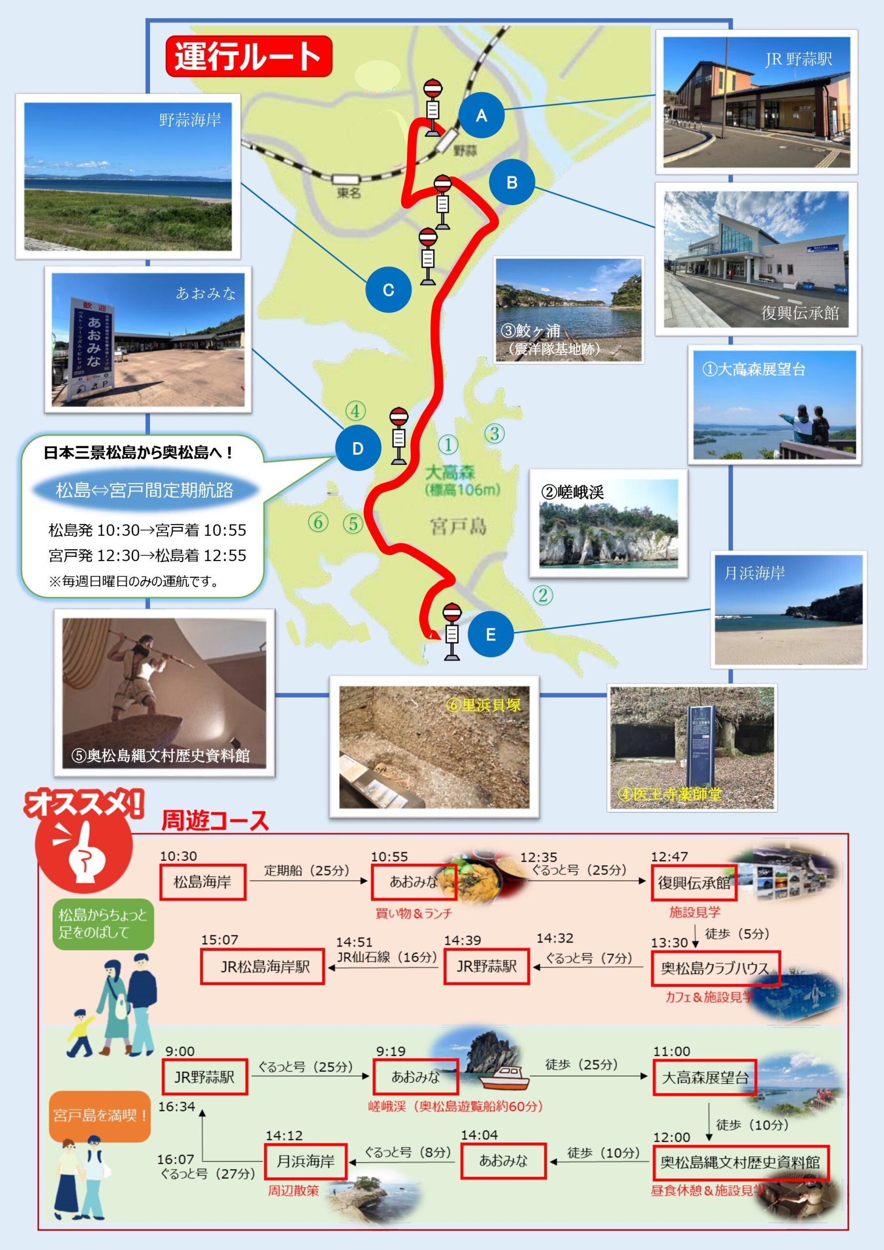令和7年10月11日(土)から令和7年10月26日(日)の期間中の土・日・祝日の合計7日間の運行となりますので、この機会にぜひ、風光明媚な奥松島を観光してみてください!✨
